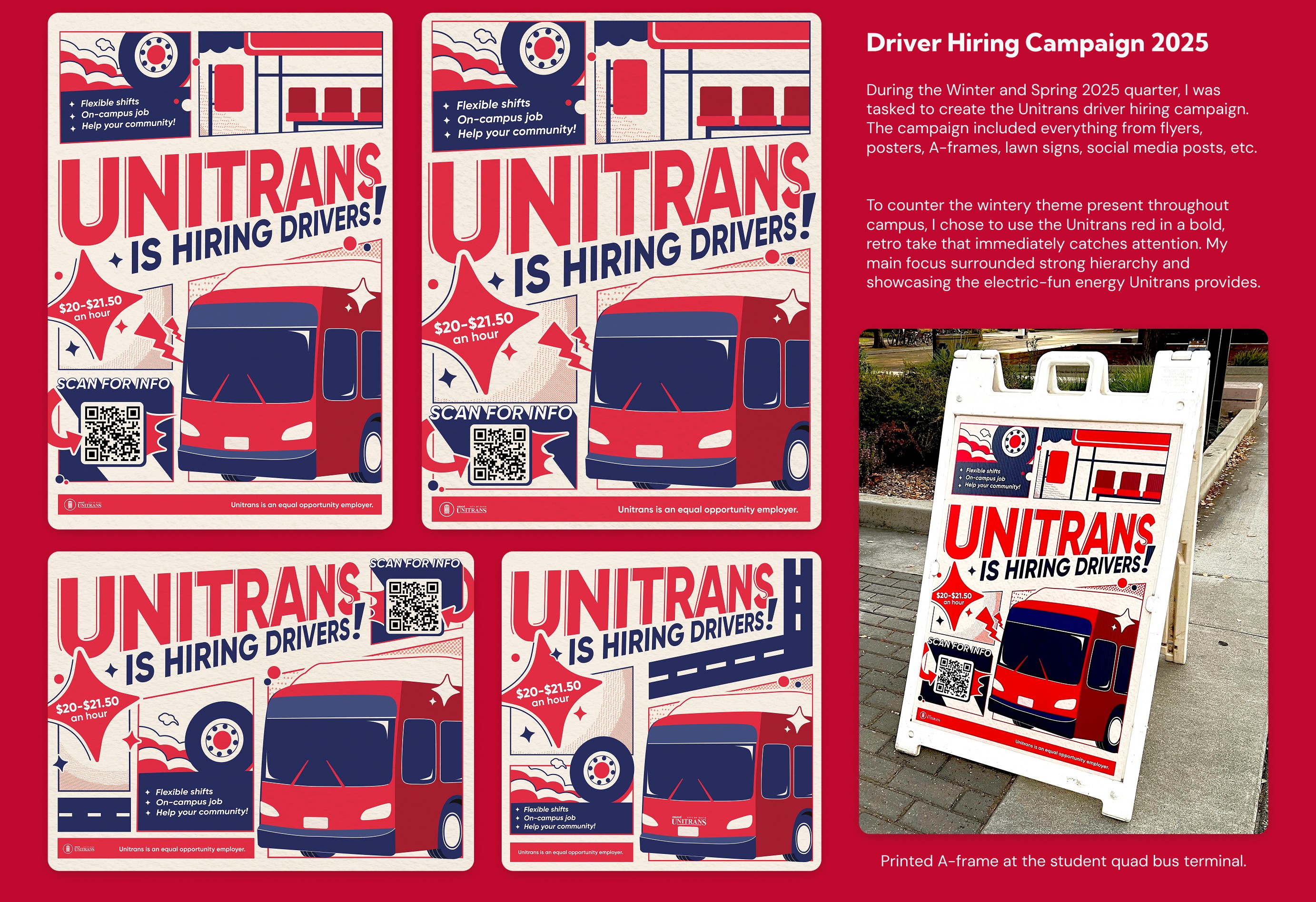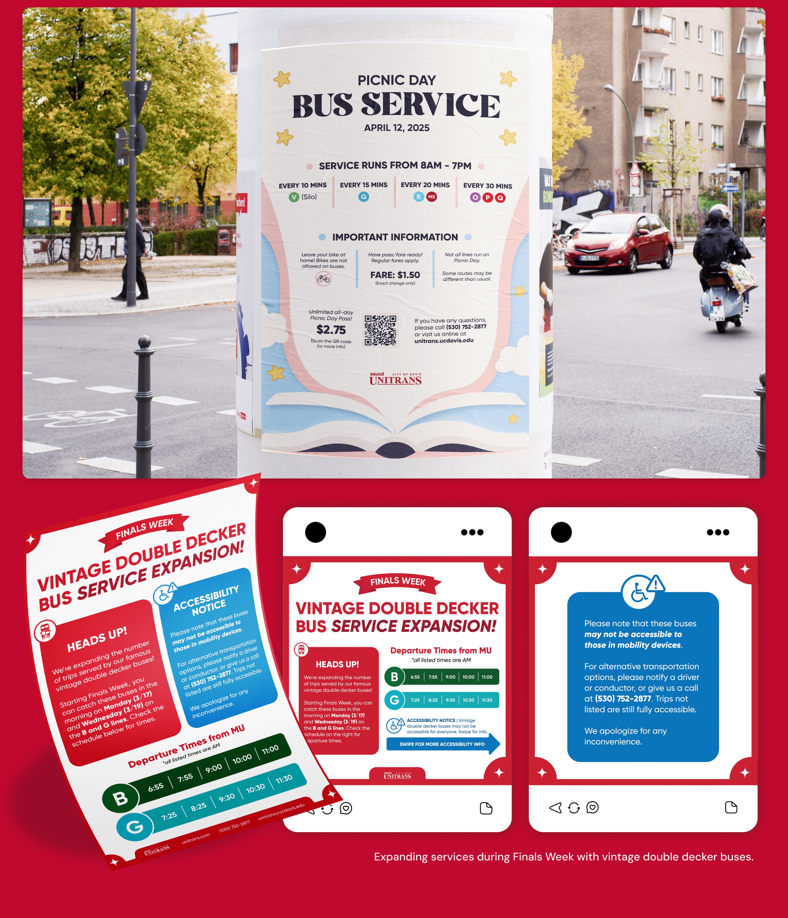 ASUCD Unitrans is a student-run bus system at UC Davis that provides public transportation for the Davis community. Our marketing primarily targets college students to communicate service changes or announcements.